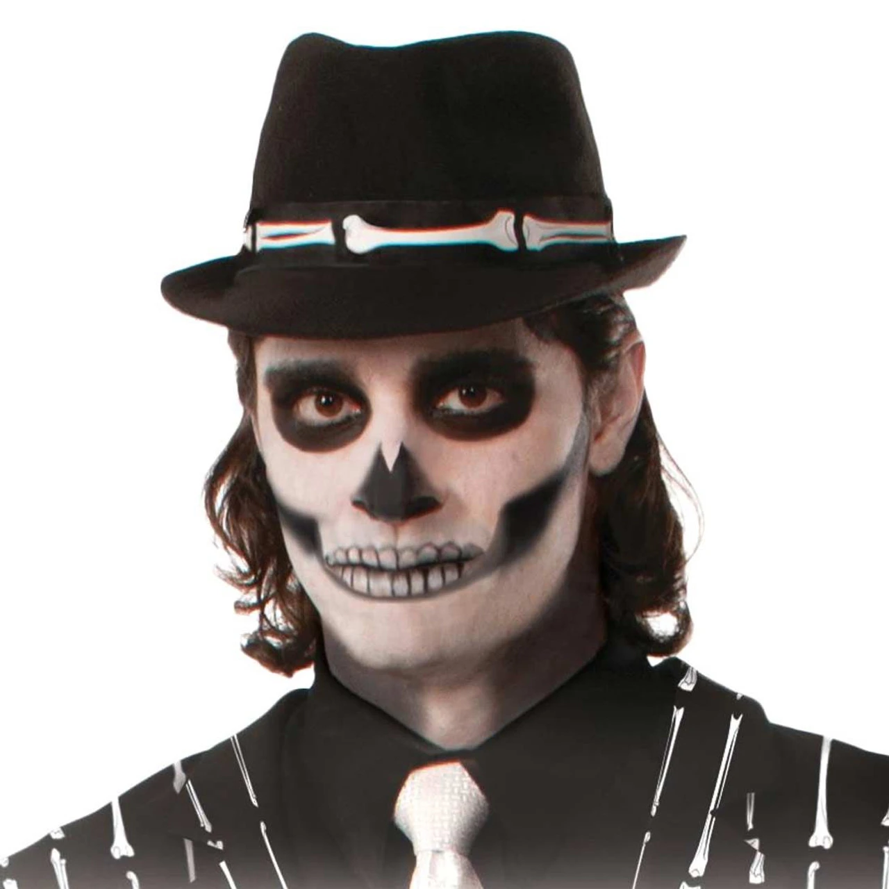 Black & White Skeleton Day of the Dead Fedora Fancy Dress Hat