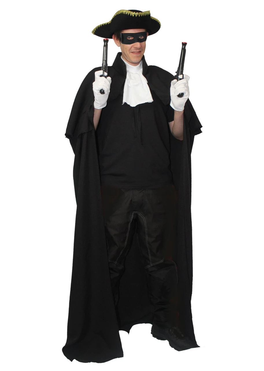 Includes: Long collar cape with attached mantle cape, White Gloves, Eye Mask & White Cravat. Deluxe Hat is Felt with Fabric Braiding. Cape