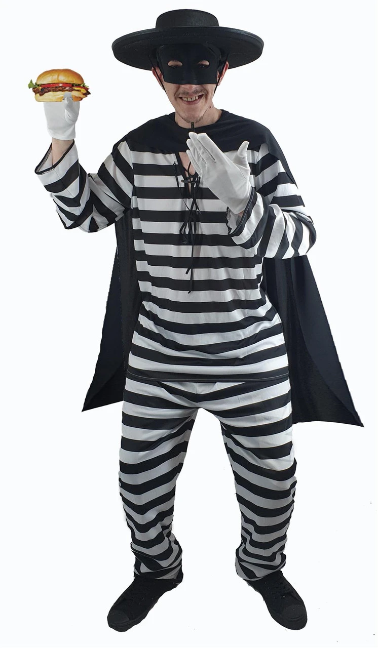 Unisex Adults Fast Food Beef Burglar 1980’s 1990’s Fancy Dress Costume