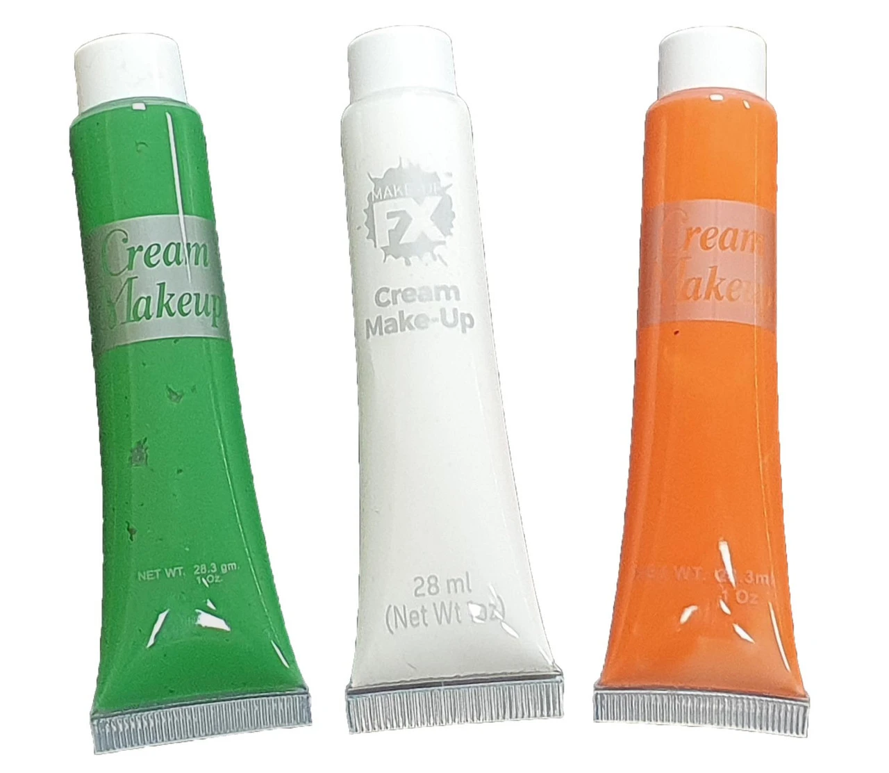 Includes: 1x Orange, 1x White, 1x Green Pre Mixed Face Paint Tube.