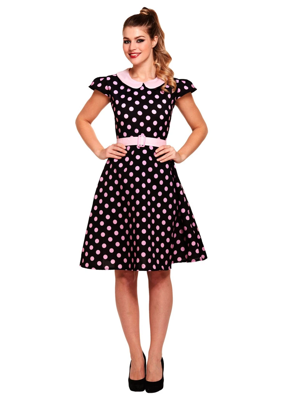 Ladies 1950’s Black & Pink Spot Polka Dot Retro Fancy Dress Costume