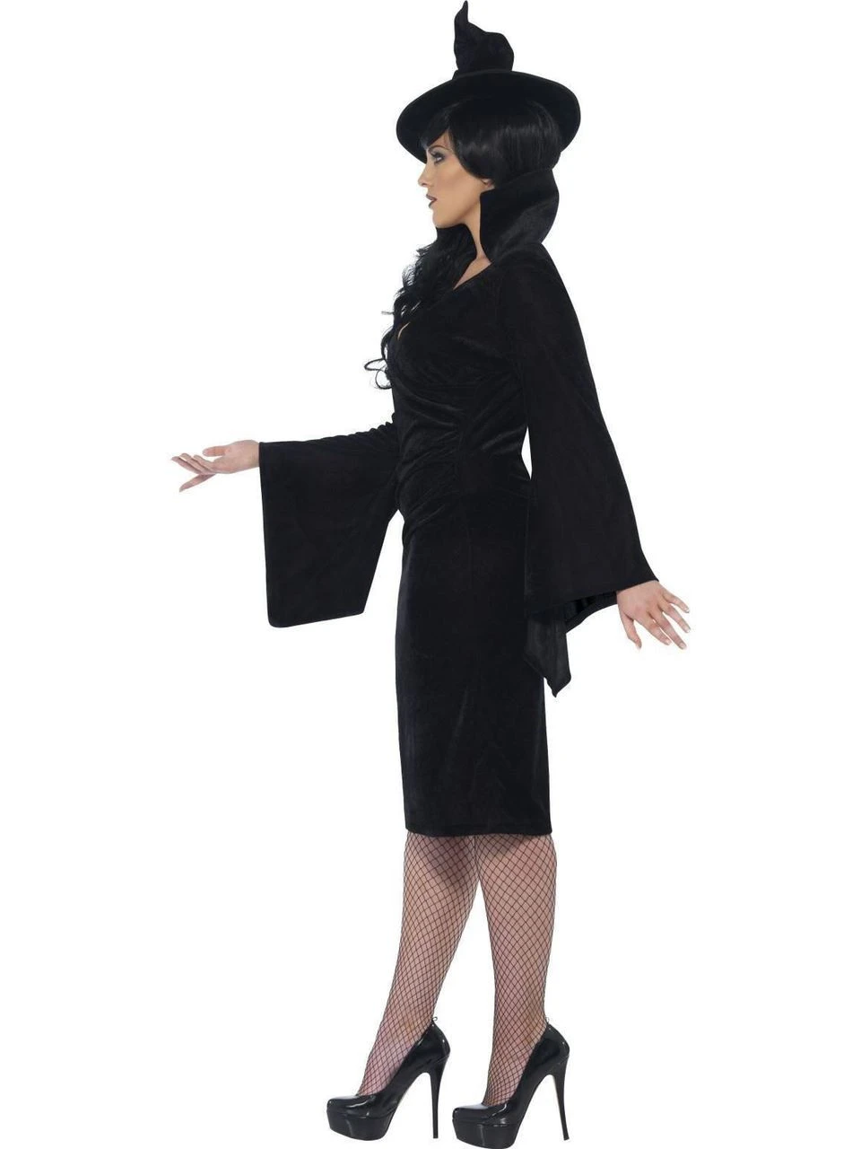 Conjure up some spells in the Curves Witch Costume! With a long sleeved black dress and hat, just add a pair of Fever fishnet tights and a long dark wig to complete the look.