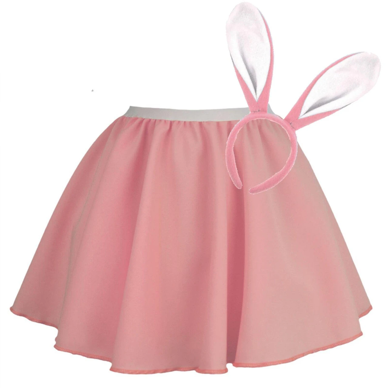 Ladies Pastel Pink Bunny Girl Skater Skirt Set Cute Easter Fancy Dress Costume