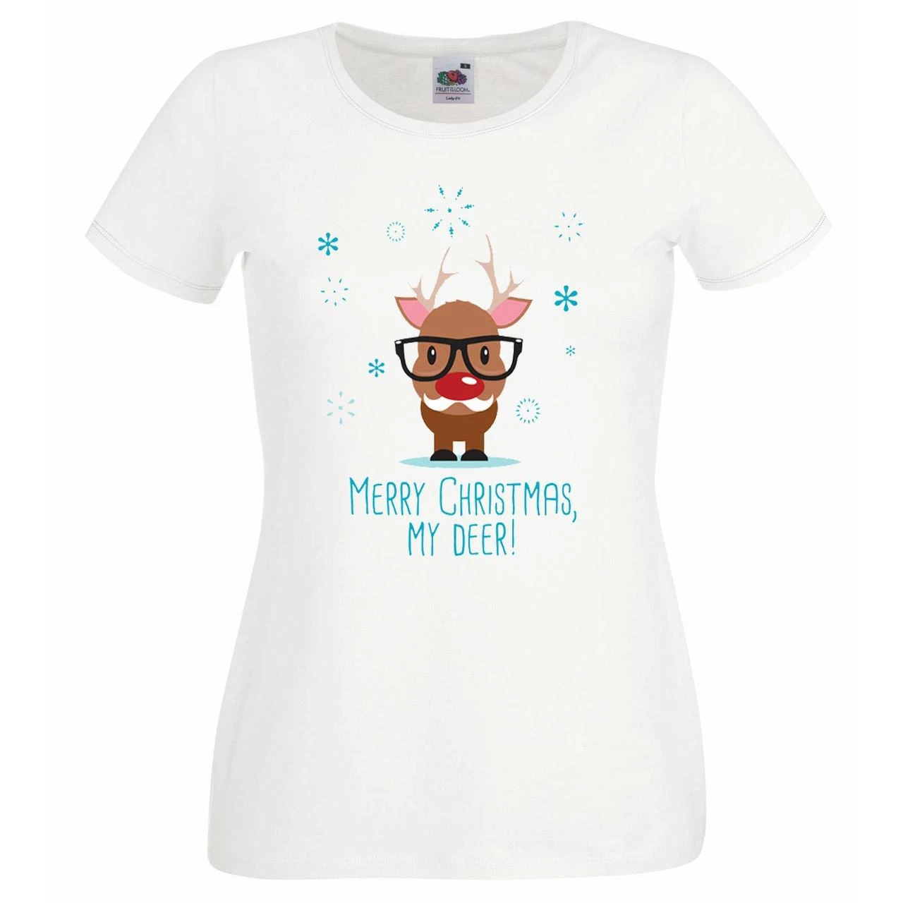 Ladies White Merry Christmas My Deer Funny X-Mas T-Shirt Ideal Secret Santa Gift