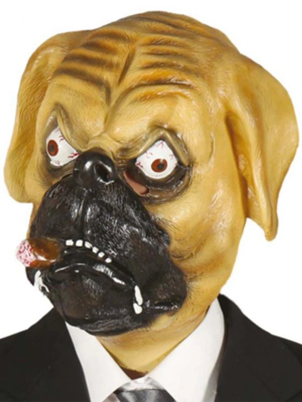 Rubber Overhead Bulldog Puppy Dog Mask With Cigar Animal Fancy Dress