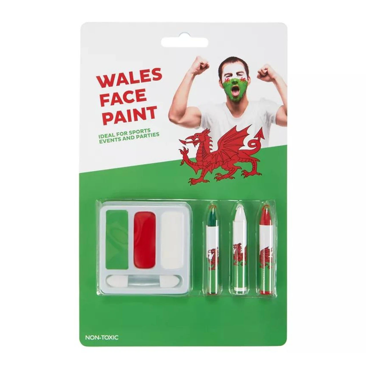 Wales Supporters Face Paint Green White Red Non Toxic Palette Fancy Dress Accessory