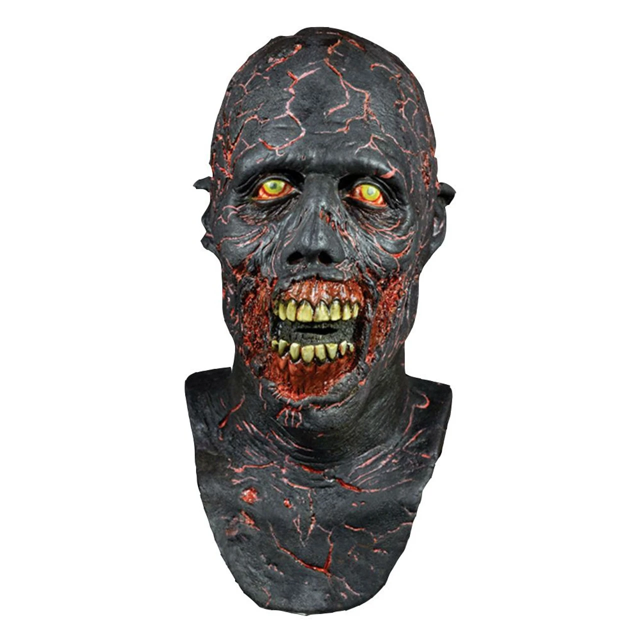 Features: Latex zombie mask, Gruesome burnt details, Covers front of face and secures w/ elastic band. Holes for eyes, nose and mouth. One Size Fits Most